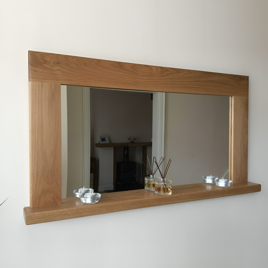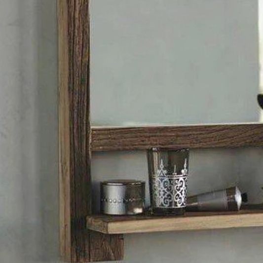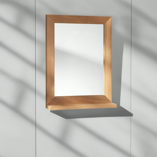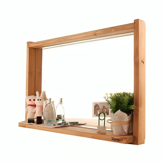 مرايا بإطار خشبي مع رف