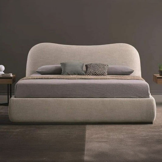 سرير خشبي بتنجيد مضلع فاخر