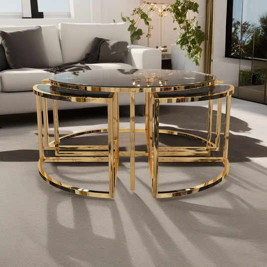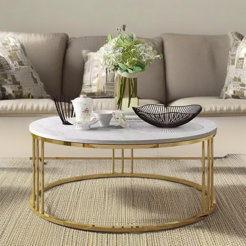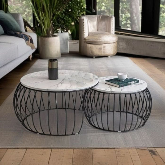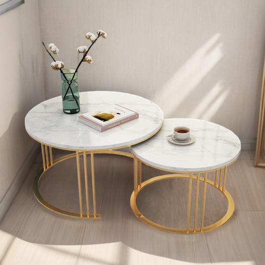 طاولة قهوة دائرية متداخلة بسطح رخام