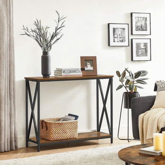 كونسول معدن بسطح خشبي