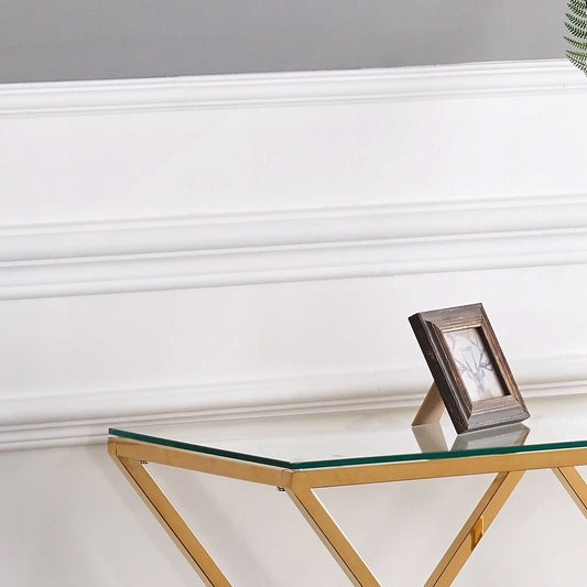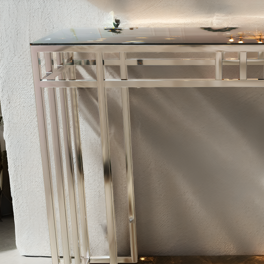 كونسول معدني بسطح زجاج