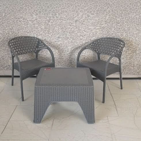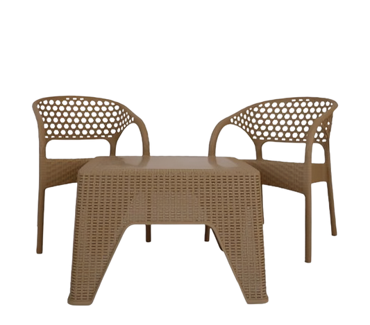 طقم بلاستك بامبو 2 كرسي وطاولة