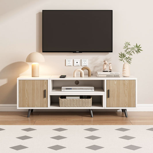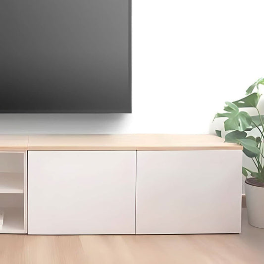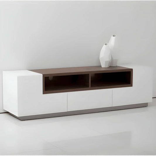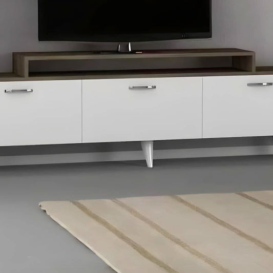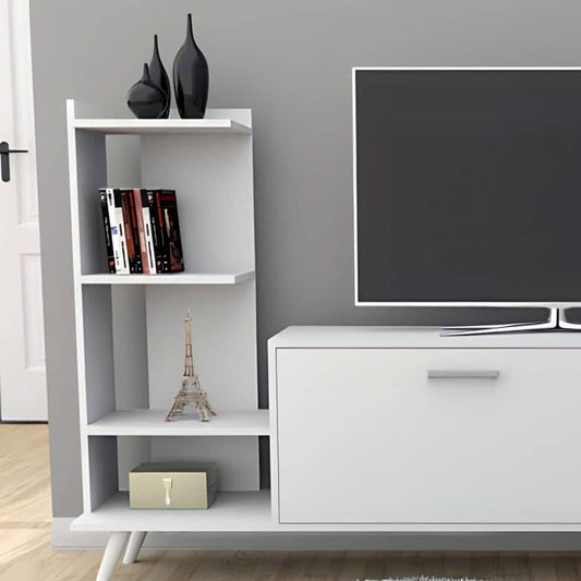 طاولة تلفاز أبيض بمساحة تخزين