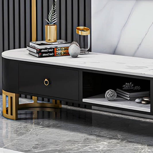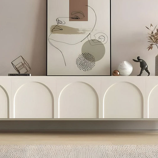 طاولة تلفاز أبيض بمساحة تخزين