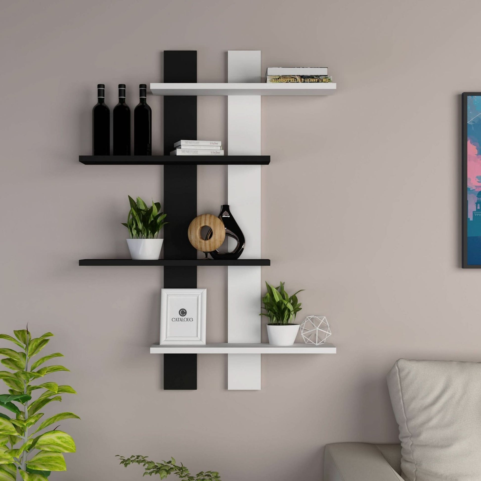 رف حائط راقي، مصنوع من خشب ام دي اف، حيث أنه مصمم بشكل أنيق من أربعة أرفف،فيمكنك وضعها بغرفة المكتب أو غرفة المعيشة، فهي متوفر بالألوان الأبيض مع الأسود و خشبي غامق مع الأبيض و الأبيض مع البيج،فيمكنك اختيار ما بتناسب مع غرفتك.