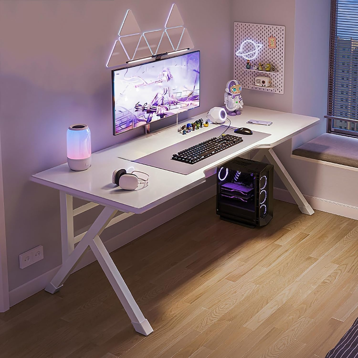 مكتب كمبيوتر كبير وطاولة ألعاب سميكة بتصميم بسيط، مثالية للاستخدام في المنزل أو غرفة النوم، وطاولة دراسة للكتابة مخصصة للطلاب