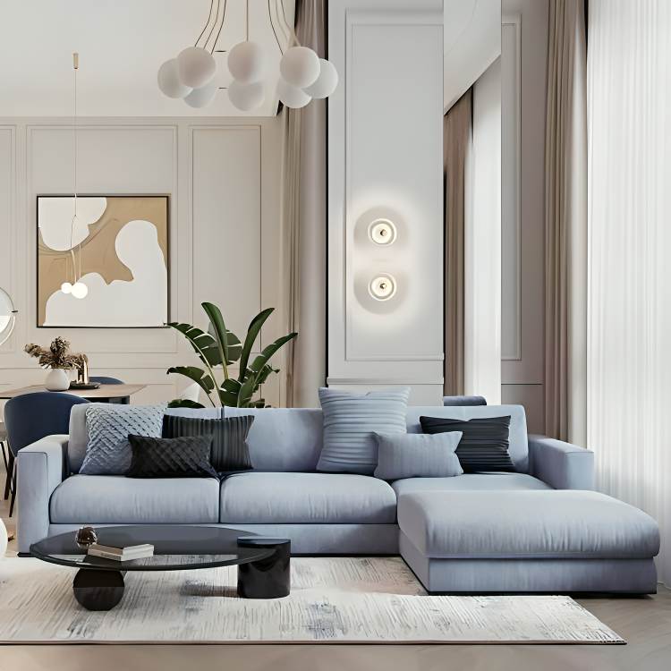 استمتع بالأناقة والراحة مع كنبة الزاوية الحديثة التي تجمع بين التصميم الجذاب والوظيفية العملية. يعكس تصميمها العصري الفخامة والأناقة، مما يجعلها إضافة مثالية لأي مساحة معيشة. تمتاز بمواد عالية الجودة وتصنيع دقيق، حيث توفر مقاعد واسعة ومريحة لضمان الراحة القصوى. كما تضمن هيكلها القوي والمتين بأن تدوم لسنوات قادمة. احصل على مظهر عصري وأنيق في منزلك مع كنبة الزاوية الحديثة، واجعل وقتك في المنزل تجربة مريحة وممتعة.