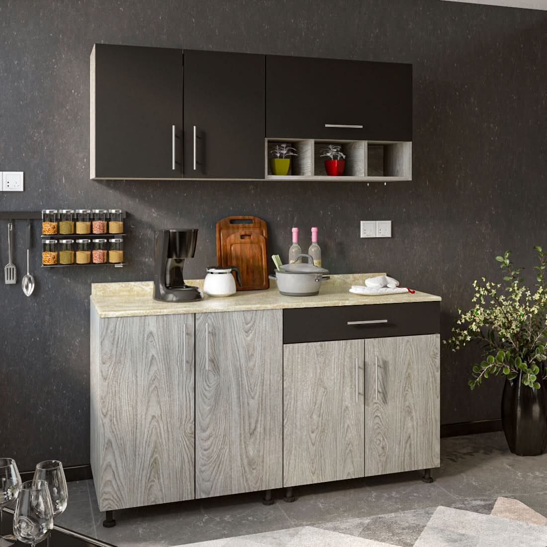 تمتاز بتصميمها العصري وجودتها العالية، فهي الخيار المثالي لأولئك الذين يبحثون عن مطبخ عملي وأنيق في نفس الوقت تتميز بمتانتها وقوة بنائها العالية. فهي مصنوعة من أجود أنواع الخشب المتين، مما يجعلها قادرة على تحمل الاستخدام اليومي الشديد وتدوم طويلاً.