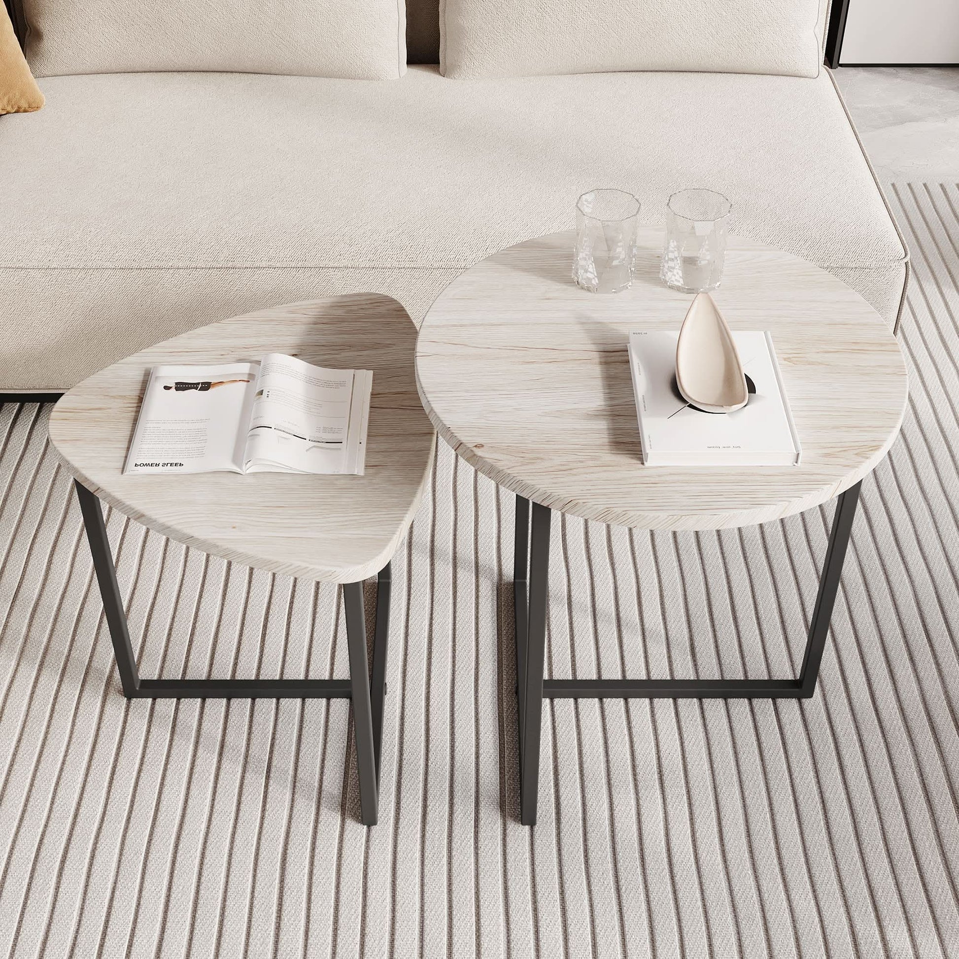 طاولة قهوة دائرية بتصميم مزدوج مكونة من قطعتين باطار معدني لغرفة المعيشة مصممة بتصميم