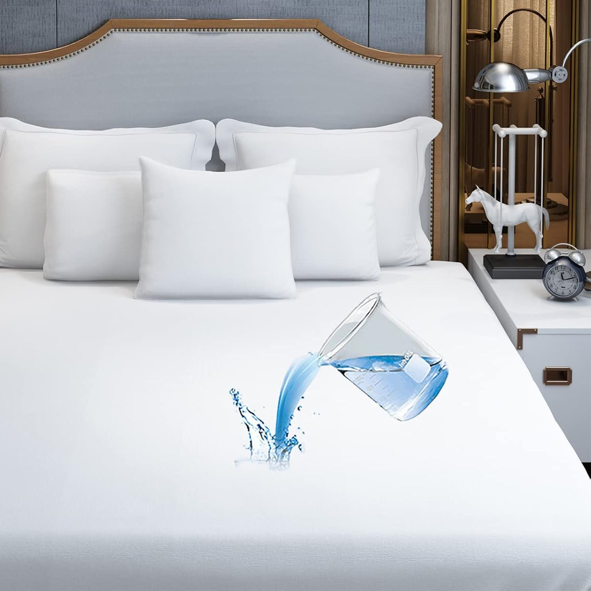 واقي مرتبة مقاوم للماء مع غطاء وسادة من قماش تيري الخيزران، جودة ممتازة، جيد التهوية، يوفر حماية مثالية ضد الحيوانات الأليفة والأطفال بجيب عميق