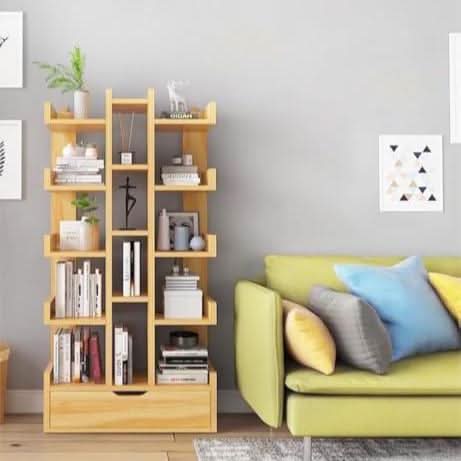 وحدة أرفف بتصميم الشجرة من منزلنا مع درج لتوفير مساحة للتخزين لغرفة المعيشة لمظهر حديث وعصري مصنوع من الخشب عالي الجودة